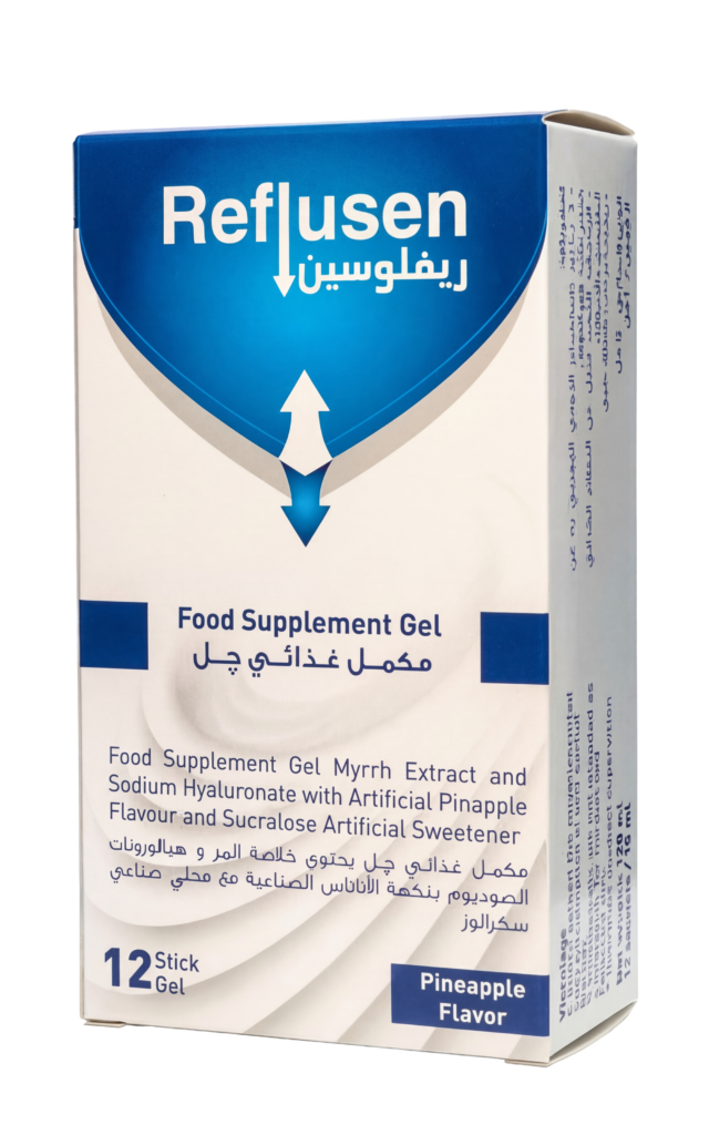 ريفلوسين (Reflusen Gel) ݘل هو مكمّل غذائي مضاد لارتجاع المريء والحموضة، يأتي في أكياس جاهزة للاستخدام دون ماء، ويعمل على تكوين طبقة واقية تهدّئ المريء وتخفف الأعراض بسرعة. سواء بعد وجبة ثقيلة، أو يوم مرهق، أو موقف مفاجئ ريفلوسين هو راحتك الجاهزة عند اللزوم